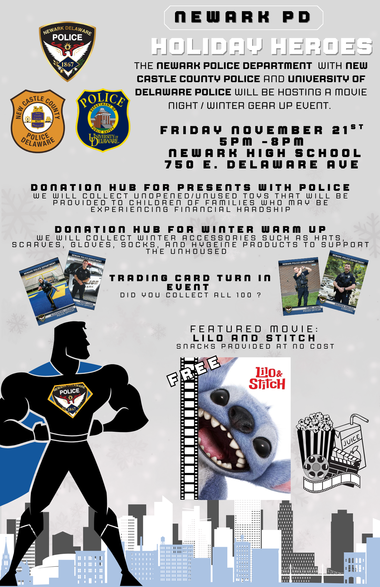 Come enjoy the movie, meet your local officers and community partners, and help us spread warmth, kindness, and holiday joy throughout Newark! π